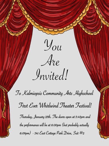 Tomorrow, students will decide who will act, direct, design lighting, create sound effects, write the playbill, collect props, sew costumes, paint backdrops, and stage manage. And come Thursday at 6pm a performance it shall be! The theme is “Not From Around Here.” To throw in a bit of a teaser, two of the requirements (all decided by the kids) are to include an egg and an epiphany expressed in alliteration.
